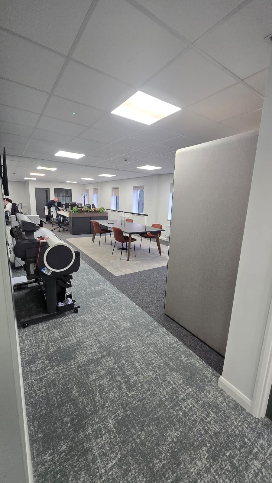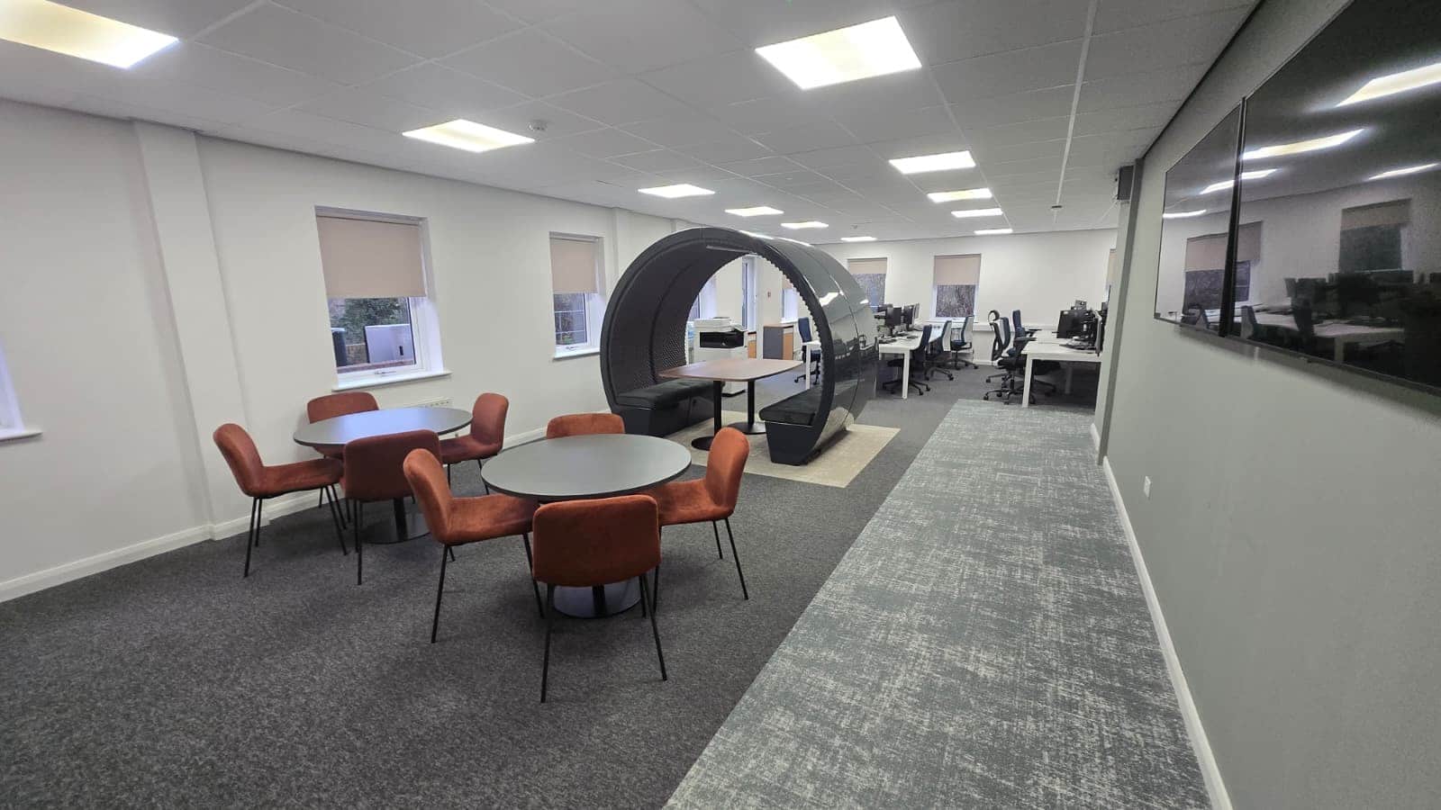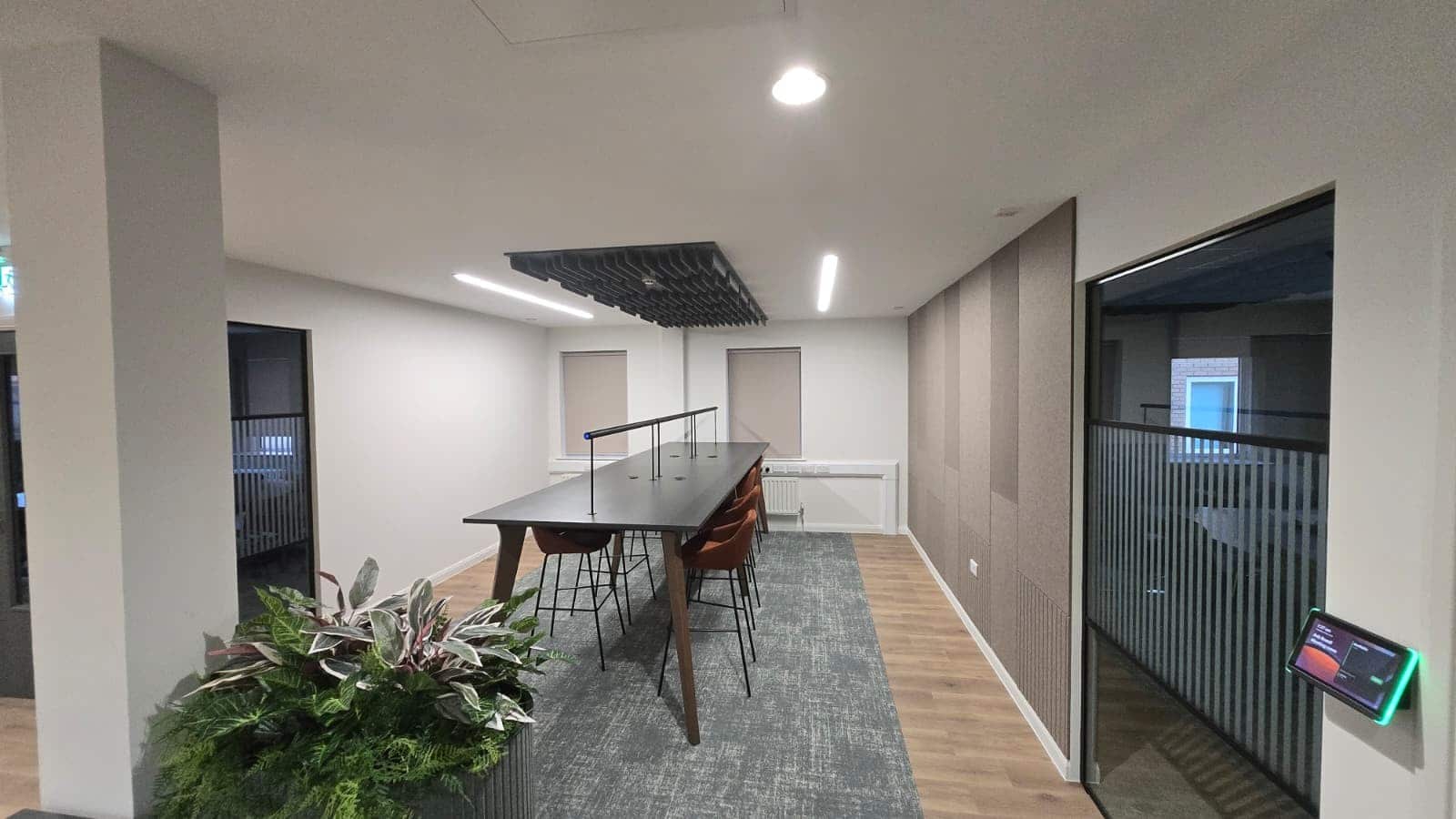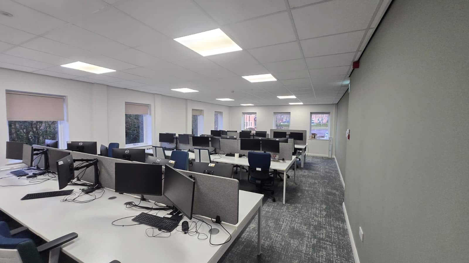 A key challenge on this project was adapting the electrical infrastructure to suit the evolving office layout while maintaining a clean and modern finish.