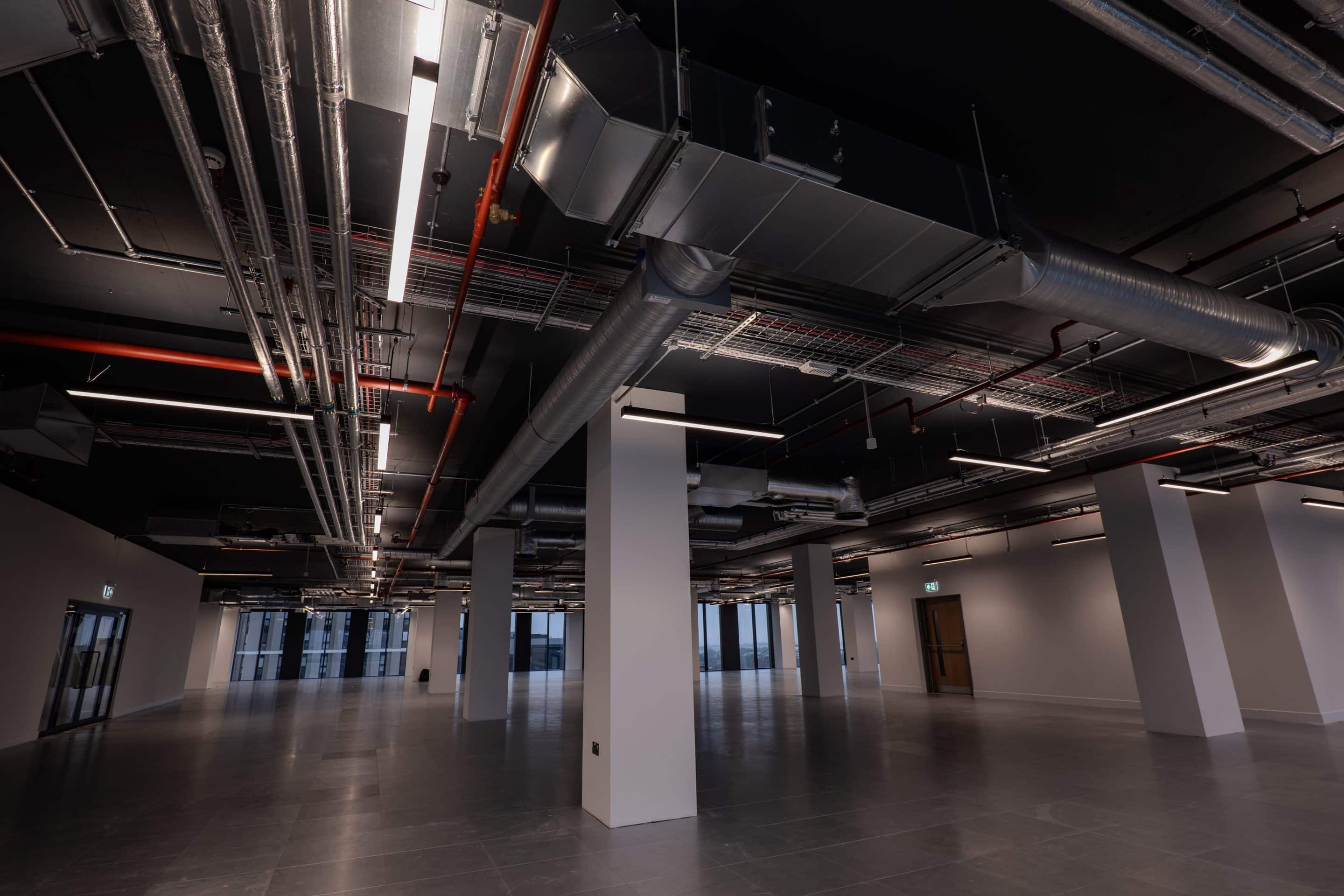 High-efficiency lighting with intelligent dimming controls, resilient power infrastructure and robust life safety systems ensure long-term performance, flexibility and low running costs for the occupier, while supporting BREEAM and WELL certification requirements.