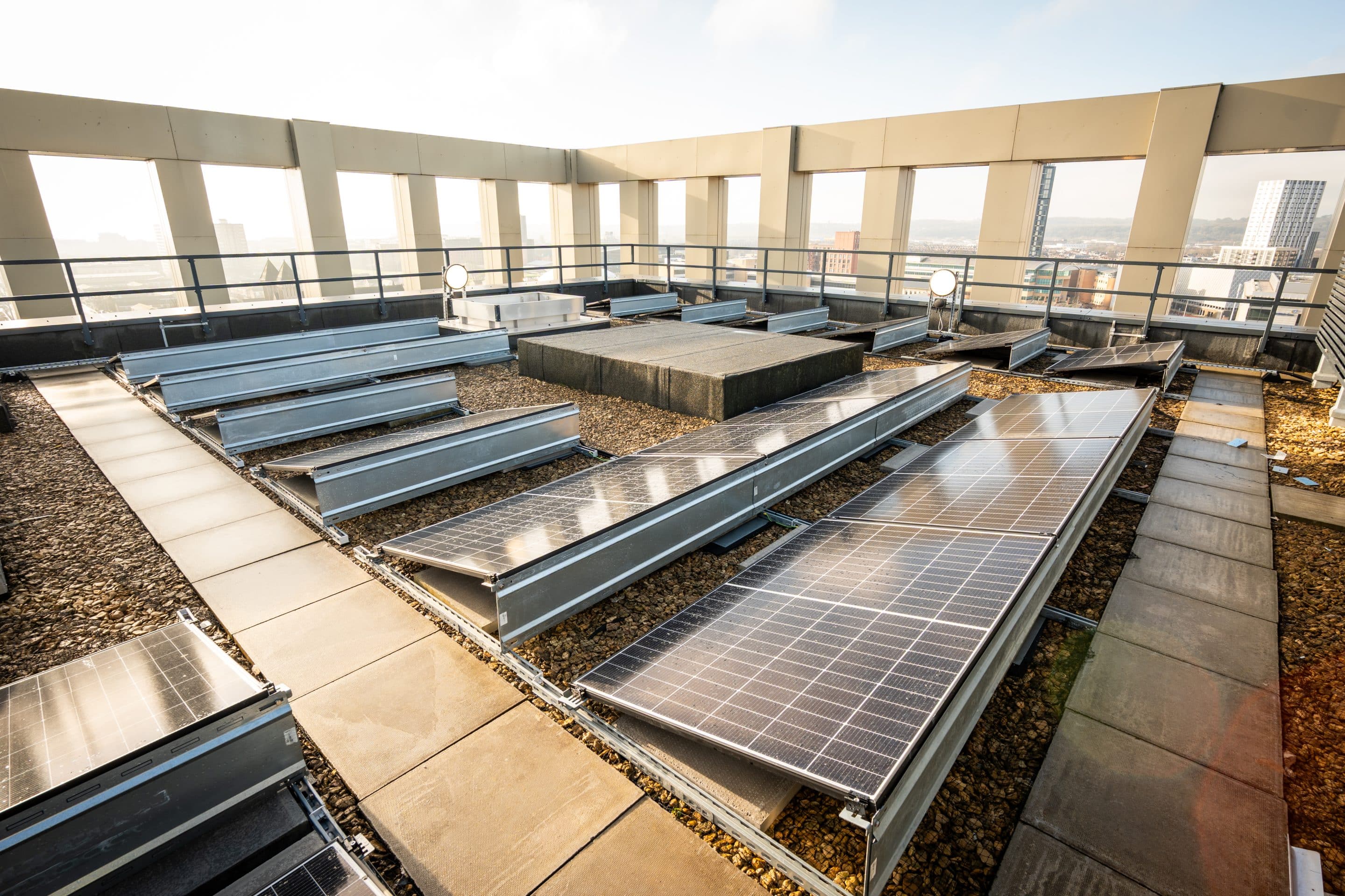 Sustainability was fundamental to the design and delivery of John Street. The all-electric strategy, combined with on-site renewable generation via the photovoltaic array, supports the building’s targeted EPC ‘A’ rating and contributes to reduced operational carbon emissions.